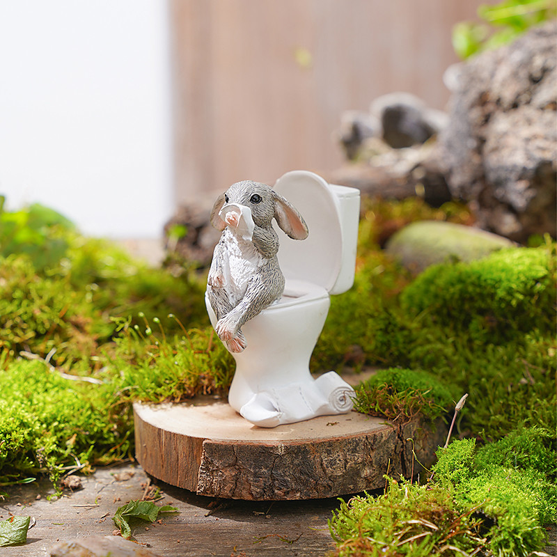 1PC Cute Mini Rabbit Statue Decoration Resin Material Hand-painted Bonsai and Potted Plant Decoration Handicraft Garden Decoration Horticultural Micro-landscape Decoration Small Animal Decoration