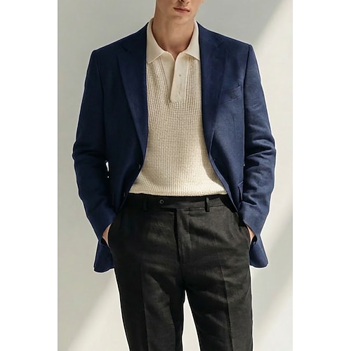 Herren Leichte Jacke Leinenblazer Lässig Täglich Geschäft Elegant Leicht Sommer Frühling Baumwolle POLY Einfarbig Minimalistisch Einreihig Zwei-Knopf Blazer Schwarz Marineblau Himmelblau Schokolade
