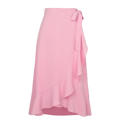 Per donna Gonna Elegante Moda Casual Midi Vita media Gonne Semplice Arricciato Orlo irregolare Micro-elastico Quotidiano Streetwear Blu Nero Rosa Verde militare Estate Cotone Poliestere