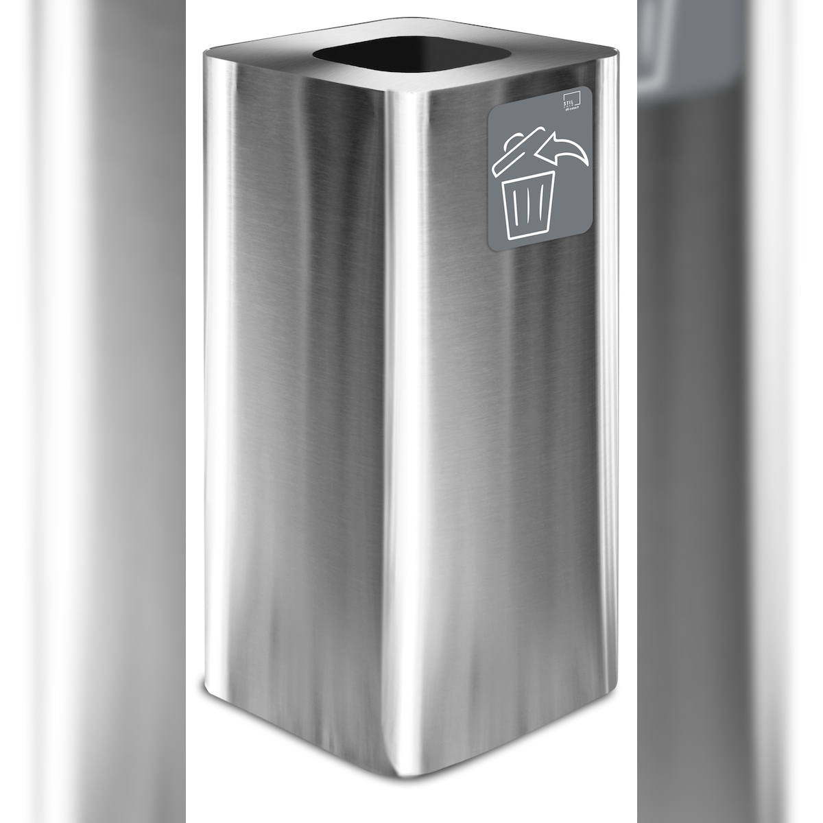 Stil Casa PURE Abfallbehälter, Edelstahl, 38x38xh. 80 cm, mit magnetischem Piktogramm, 100 Liter, satiniert.