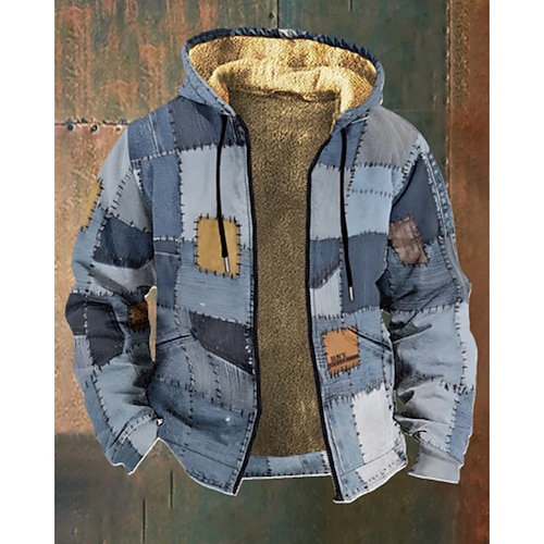 Per uomo Grafico Plaid Felpa con Cappuccio Giacca di pelle Moda Streetwear Casual Manica Lunga Con Cappuccio All'aperto Sport all'Aperto Uscire Blu Blu scuro Tasca Stampato Pile Inverno progettista S