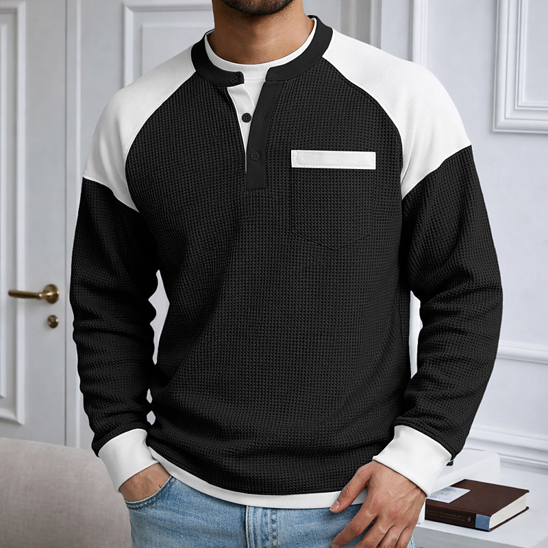 Men Waffle T-shirt T Shirt Long Sleeve Henley Fall Fall Winter All Seasons Solid Color Textured Traditional / Vintage Casual Patchwork Color Block Casual Home Outdoor Black Light Green Gray Top Tee