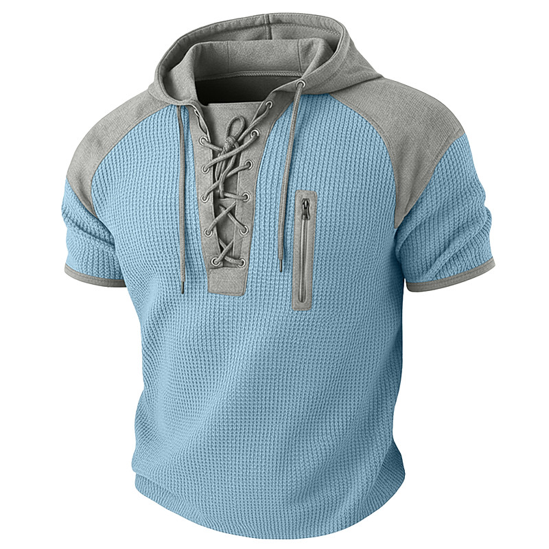 Men's Waffle Henley Shirt Tee Top Short Sleeve Hooded Lace Up Neck Summer Spring All Seasons Solid Color Fashion Designer Casual Color Block Casual Daily Outdoor Light Blue Black White Top Tee for Men