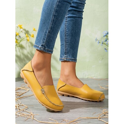 mocassini gialli da donna, comode scarpe casual slip-on, scarpe da passeggio morbide e leggere per l'uso quotidiano, viaggi, lavoro svago del fine settimana