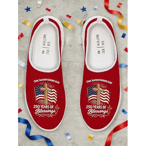 Stati Uniti 250° Anniversario Scarpe Slip-On Ampie Stampate da Donna USA - Scarpe da Passeggio Leggere Stile Urbana Casual Patriottico per Moda da Strada Festival Viaggi e Uso Quotidiano