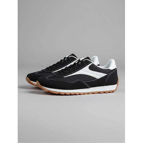 Sneakers retrò beige da donna: scarpe basse stringate casual da passeggio per tutti i giorni, casual e streetwear