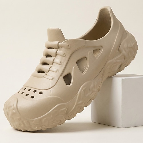 Sneakers casual da uomo beige con ritagli, leggere, traspiranti e comode, scarpe da passeggio alla moda, calzature sportive per l'uso quotidiano, viaggi, tempo libero all'aperto, attività estive e street style
