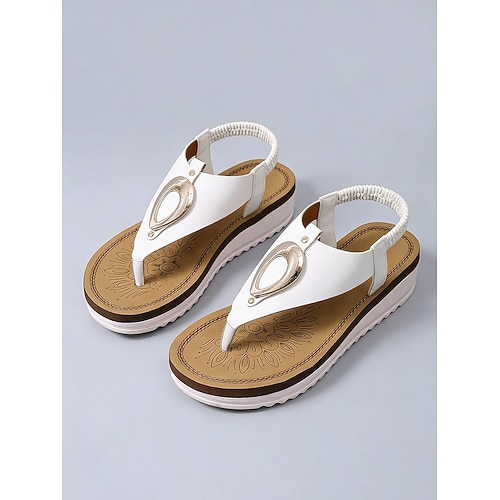 Sandali infradito bianchi da donna – infradito casual da passeggio con cinturino elastico sul retro, ideali per l'estate, i viaggi e l'uso quotidiano.