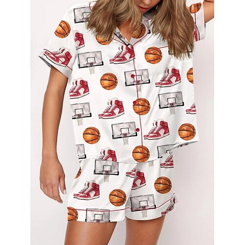 Per donna Set Pigiama Casual Comfort Grafico Elastico in vita Shorts Quotidiano Casa Manica Corta Bavero Nero Bianco Rosa Rosso Estate Primavera Vestibilità regolare