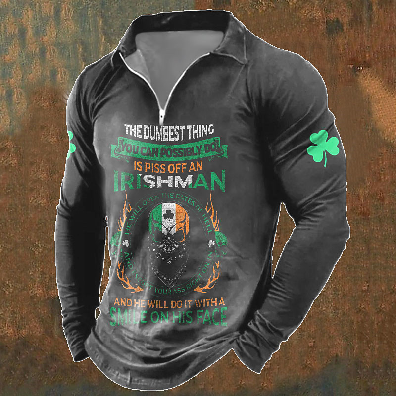 St. Patrick Men's Four Leaf Clover Saint Patrick Day Polo Polo Shirts Zip Polo Long Sleeve Polo Shirts Turndown Zip Casual Outdoor St.Patrick's Day Casual Daily Streetwear 3D Print Spring Summer