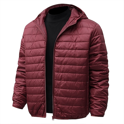 Per uomo Giacca imbottita Giacca trapuntata Imbottito Cerniera completa Con cappuccio Natale All'aperto Streetwear Regolare Neutro Moda Quotidiano Inverno Tinta unica Vinaccia Blu marino Blu reale