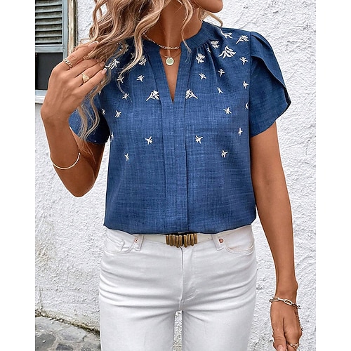 Per donna Blusa Tinta unica Elegante Casual Manica Corta Scollo a V Top Regolari Quotidiano Nero Bianco Rosa Rosso Blu Reale Estate Primavera