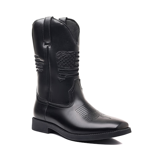 Cowboy-Arbeitsstiefel für Herren mit geprägter amerikanischer Flagge – strapazierfähige Westernstiefel aus braunem Kunstleder mit robuster Sohle für den Außenbereich und die Freizeit