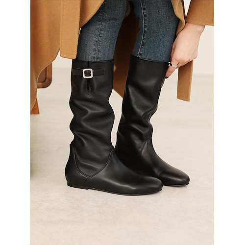 Beigefarbene, kniehohe Slouchy-Stiefel für Damen mit Schnallen- und Nietenakzenten, Vintage-Westernstil für die Freizeit im Herbst und Winter