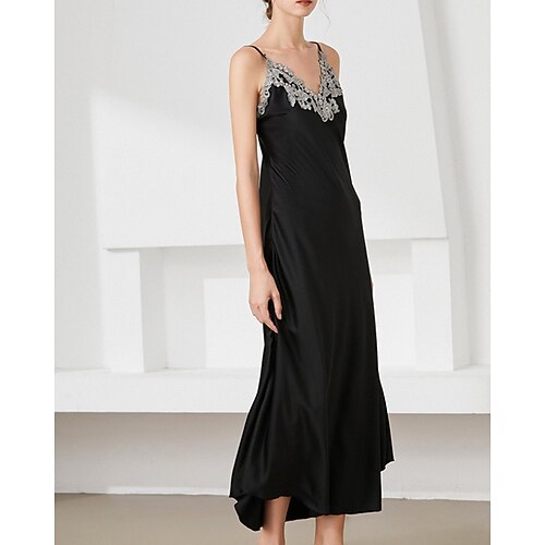 Per donna Camicia da Notte Casual Morbido Raso Colore Puro Pizzo Senza schiena Quotidiano Casa Da letto Senza Maniche Spalline Nero Rosa Rosso Blu marino Estate Vestibilità comoda