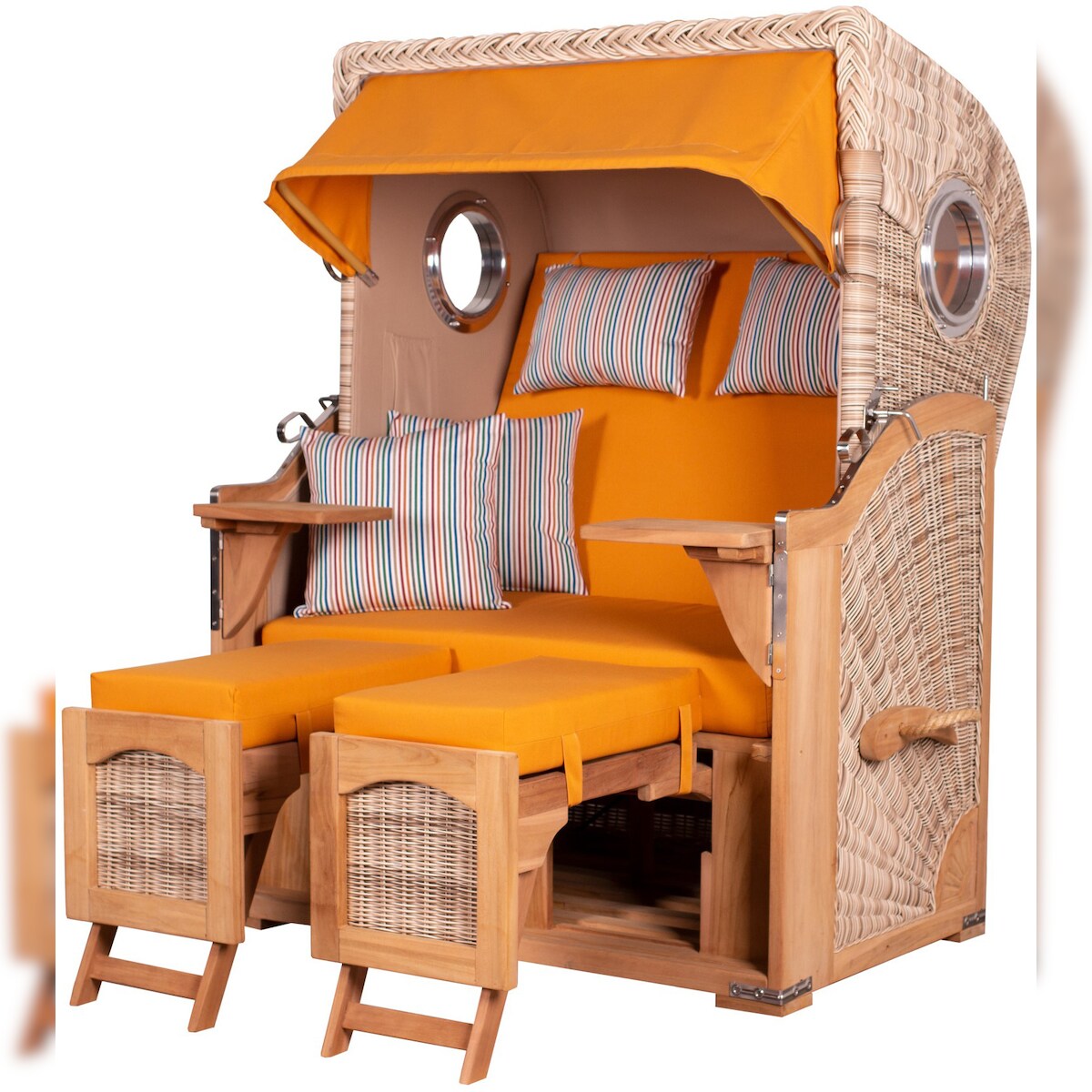 Mr. Deko Strandkorb Komplettset - bene living - Ammersee Teak - PE shell - Modell 586 - inkl. Liftersystem