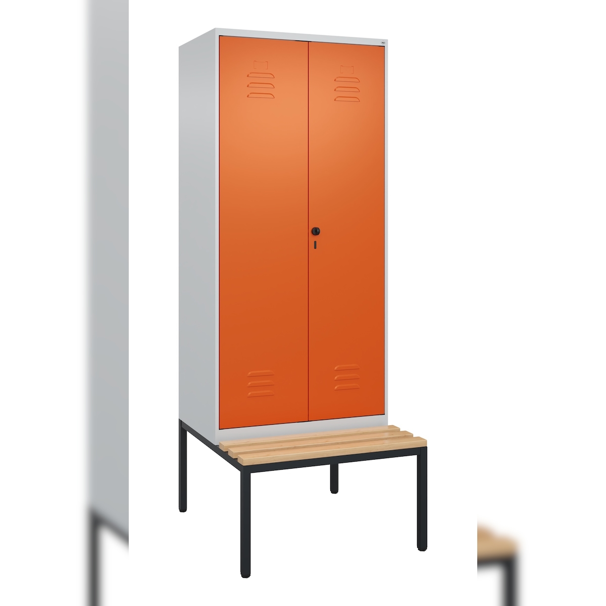 C+P Doppel-Spind Classic PLUS Buche untergebaute Bank 2 Abteile, Trennwand, HxBxT 212x80x82cm, Sicherheitsdrehriegel, Hellgrau/Reinorange von PROREGAL