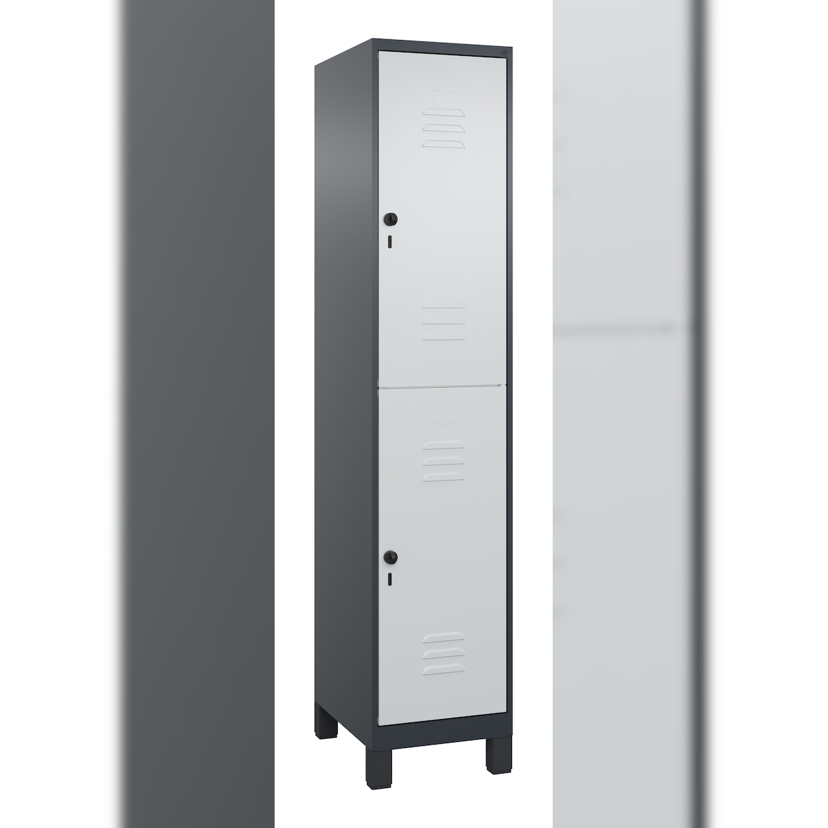 C+P Spind Classic PLUS, Füßen, 2 Abteile, HxBxT 195x40x50cm, Sicherheitsdrehriegel, Anthrazit/Hellgrau von PROREGAL