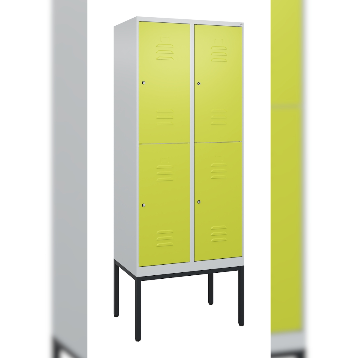 C+P Spind Classic PLUS, Kunststoff untergebaute Sitzbank, 2 Abteile, HxBxT 212x80x82cm, Zylinderschloss, Hellgrau/Clowngrün von PROREGAL