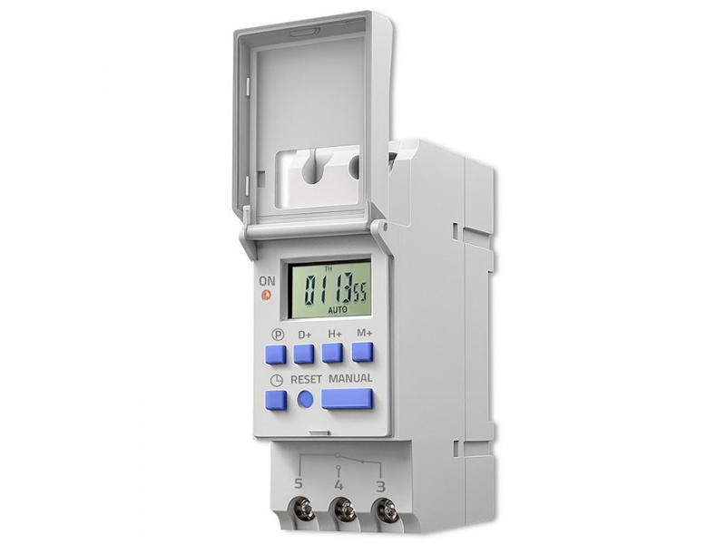 qoltec Elektronisk DIN-skinne TIMER med integrert batteri | 7-dagers tidsplan | 16 programmer
