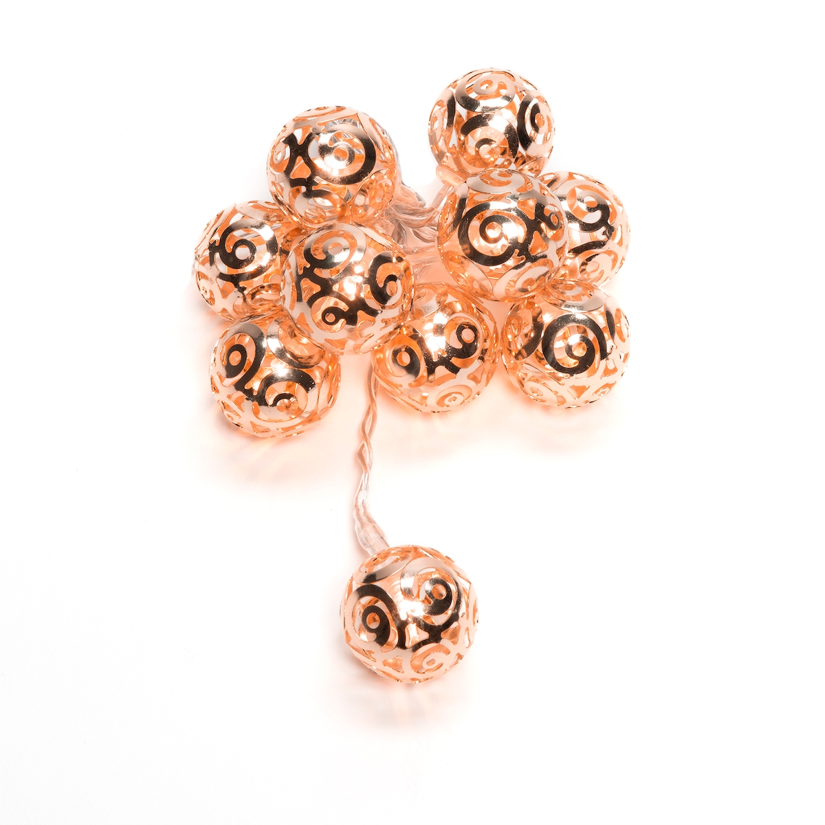 Konstsmide LED Dekolichterkette, kupferfarbene Metallbälle, mit 6h Timer, 10 warm weiße Dioden, batteriebetrieben, Innen, transparentes Kabel