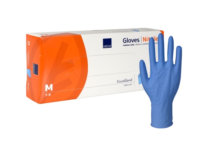 Lang undersøkelseshanske, ABENA Excellent, M, blå, nitril, pudderfri - (100 stk.)