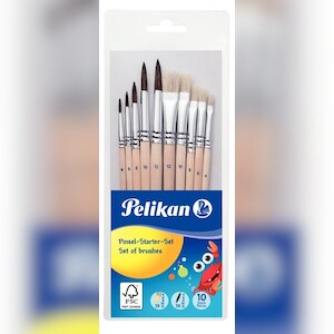 Pelikan Pinsel Starterset mit 5 Haar- und 5 Borstenpinsel, Größe: 4,6,8,10,12. VE = 1 Etui = 10 Pinsel