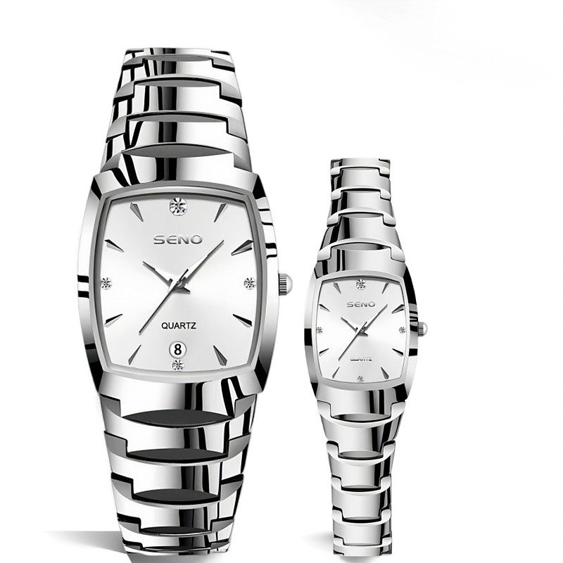 2PCS Couple Watch New Stainless Steel Strap Men's and Women's Quartz Watch with Rhinestones Scratch Resistant and Wear-resistant Dial Preferred for Holiday and Birthday Gifts