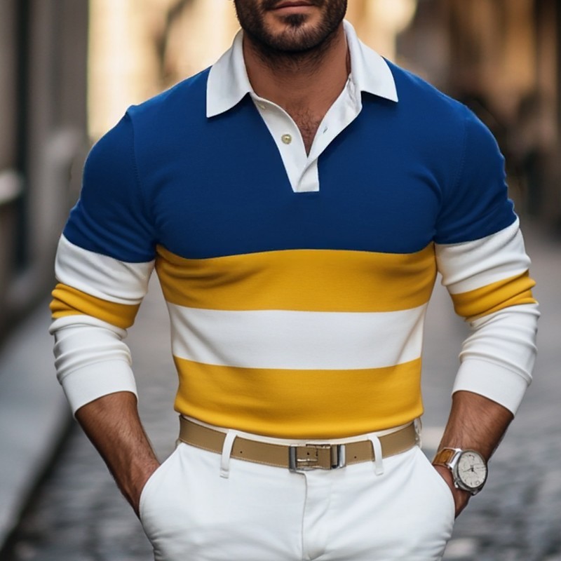 Men's Color Block Stripes Rugby Polo Shirts Long Sleeve Polo Shirts Lapel Classic Fashion 3D Print Modern Casual Sports Stripe Fall Winter Blue Green