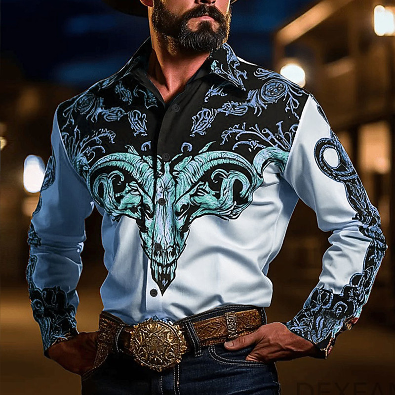 Men's Gothic Horror Tribal Polo Shirts Golf Shirt Long Sleeve Polo Shirts Collared Shirts Vintage Casual Vacation Wear Festival Wear Party Outfits 3D Print Buttons Blue Brown Green