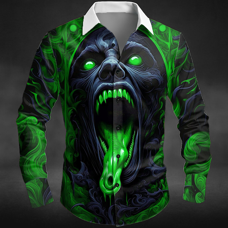Halloween Men's Halloween Costumes Monster Shirt Button Up Shirt Long Sleeve Dark Punk Gothic Style Outdoor Holiday Summer Spring Turndown 3D Print Collared Shirts Red Blue Green