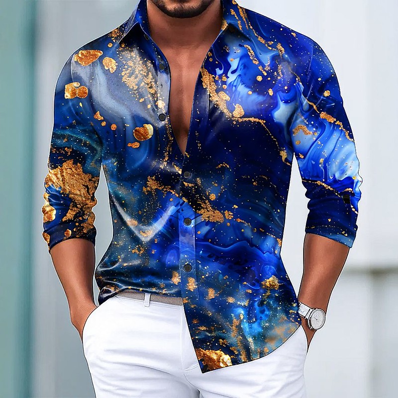 Men's Marble Abstract Art Color-blocking Shirt Satin Shirt Dress Shirt Long Sleeve Fashion Casual Vacation Dailywear Summer Spring Fall Turndown 3D Print Button Up Shirts Blue Purple Green Dark Blue