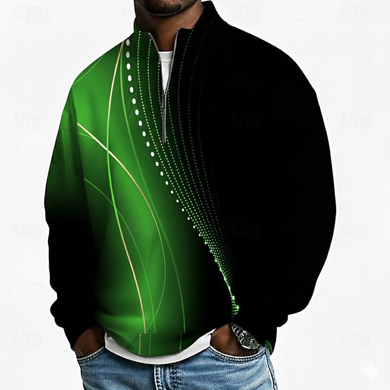 Men's Geometic Line Polo Long Sleeve Standing Collar Athleisure Vacation Athleisure Casual Daily 3D Print Spring Fall Winter Blue Green Red