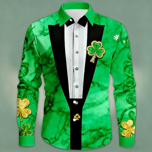 Festa di San Patrizio Per uomo A quadrifoglio Camicia in raso Camicie Camicia con bottoni Manica lunga Moda Casual Per eventi Estate Primavera Autunno Collo ripiegabile Camicie con colletto Stampa 3D