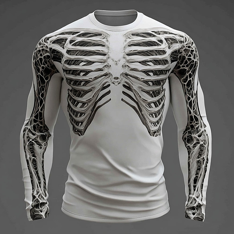 Men's 3D Skeleton T Shirt Long Sleeve T shirt 3D Print Crew Neck Shirt Fashion Exaggerated Street Casual Daily White Blue Orange Summer Spring Fall Clothing Apparel S M L XL XXL XXXL