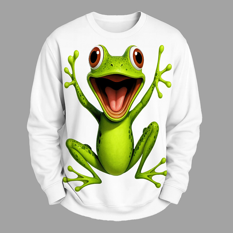 Men's 3D Frog Sweatshirt Fashion Exaggerated Daily Casual Long Sleeve Crew Neck Vacation Party Gift Black White Crewneck 3D All Seasons Designer S M L XL XXL XXXL