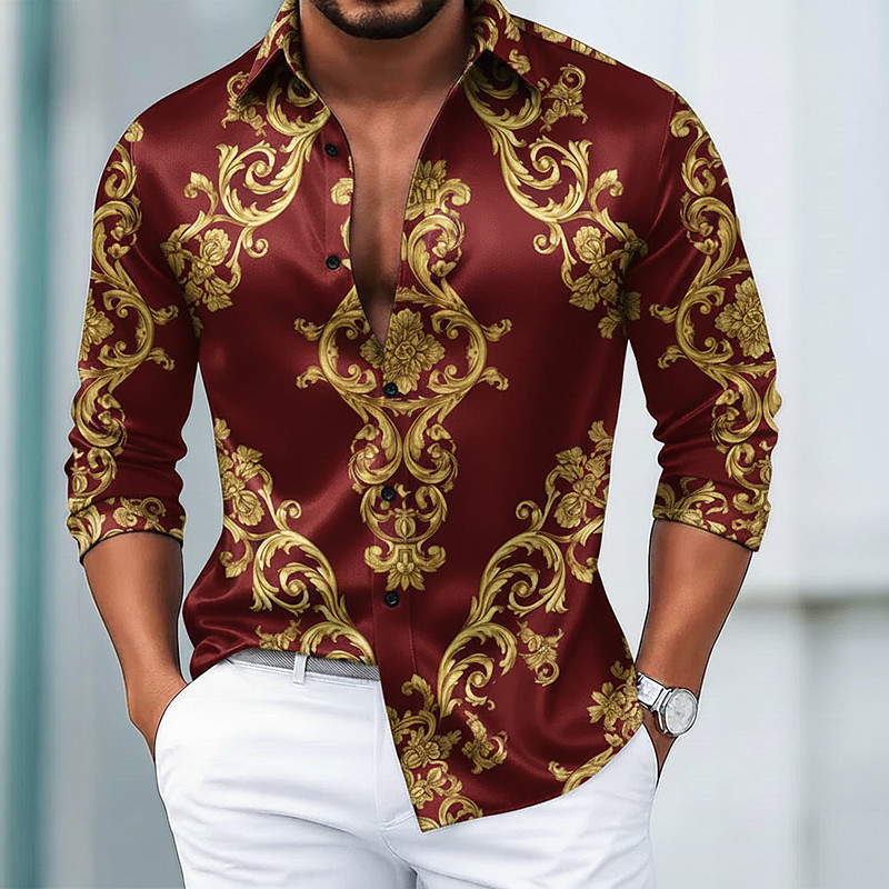 Men's Floral Print Baroque Shirt Satin Shirt Dress Shirt Long Sleeve Vintage Retro Vacation Dailywear Summer Spring Fall Turndown 3D Print Button Up Shirts Black White Burgundy Blue