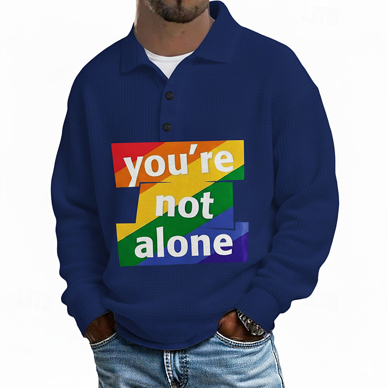 You're not alone Pride Month Men's Text Waffle Polo Shirts Long Sleeve Polo Shirts Lapel Casual Outdoor Athleisure Daily Wear 3D Print Spring Fall Winter Blue White Yellow