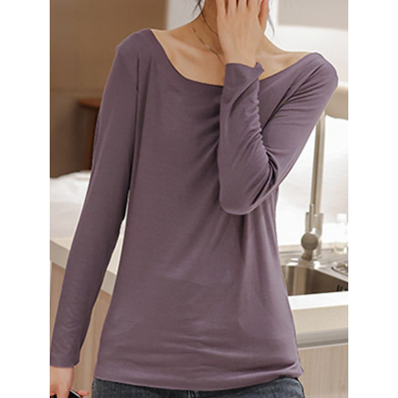 Women's T Shirt Plain Fashion Stylish Basic Long Sleeve Crew Neck Regular Tops Daily Weekend Black White Pink Khaki Beige Summer Spring Fall