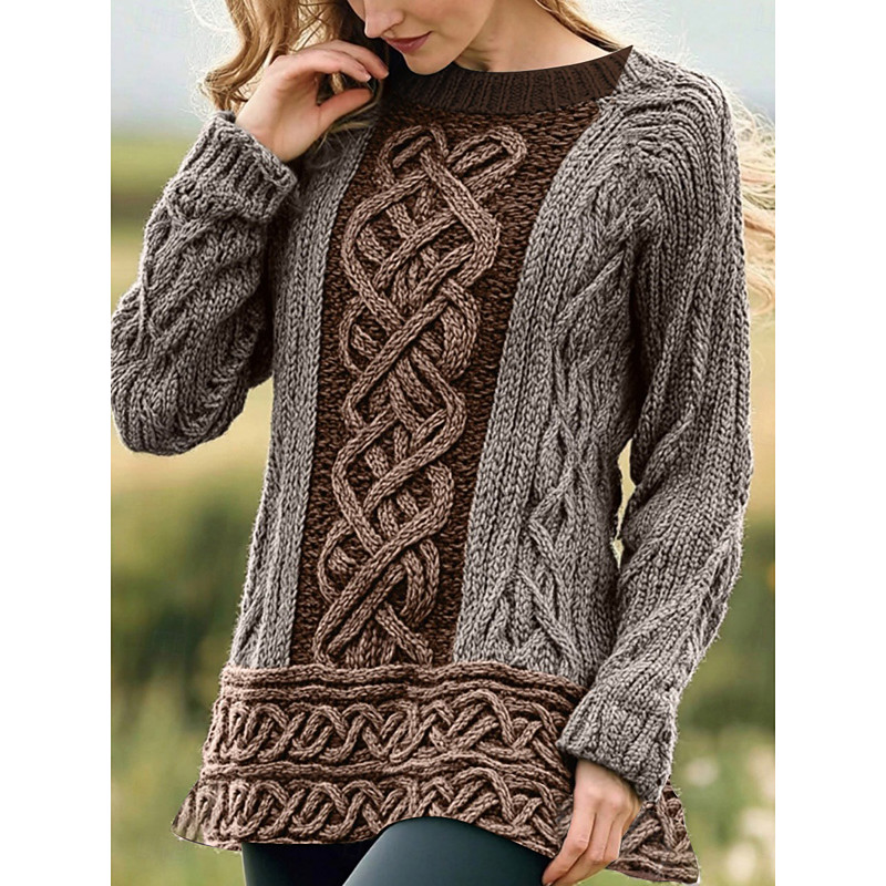 Women's Sweater Vintage Ethnic Style Casual Pure Color Cable Crew Neck Knitted Long Sleeve Regular Tops Knit Outdoor Daily Weekend Blue White Fall Winter
