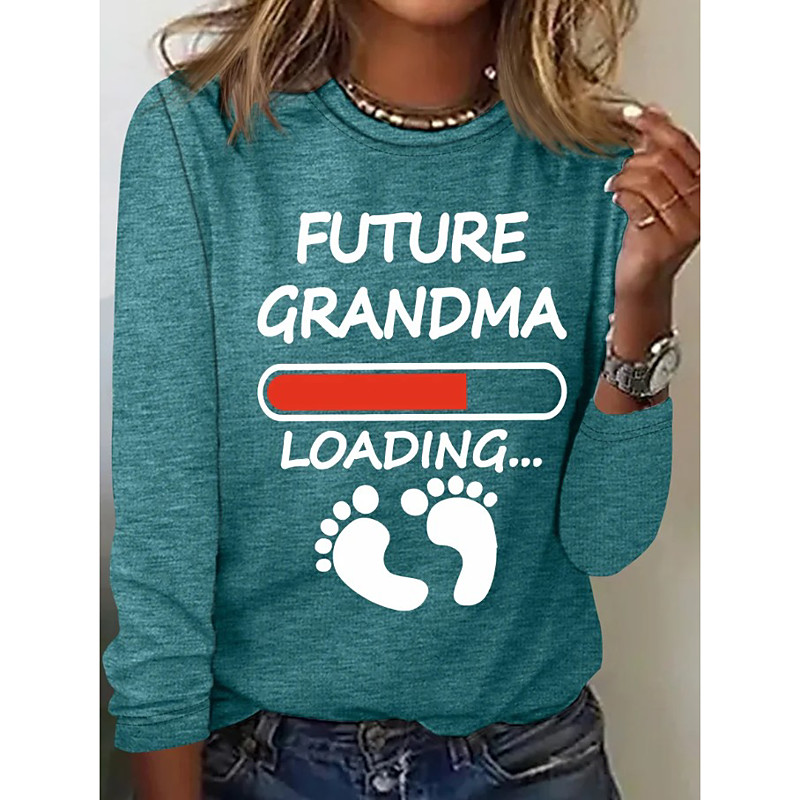 New Year Women's T Shirt Graphic Letter Vintage Stylish Casual Long Sleeve Crew Neck Regular Tops Daily Weekend Print Blue Black Red Spring Fall Winter