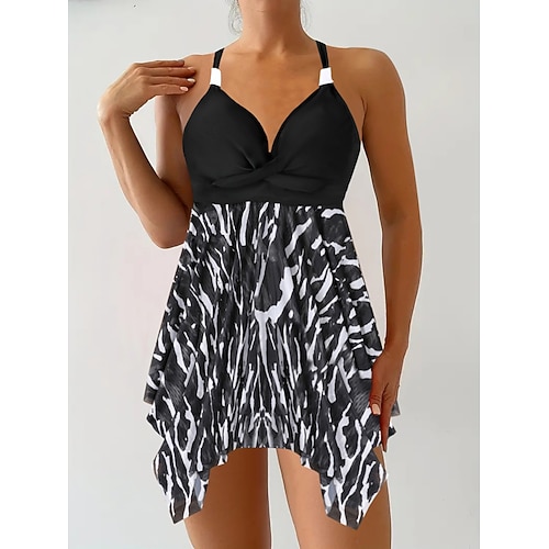 Costume da bagno da donna Tankini 2 pezzi Leopardo Cheeky Controllo della pancia Alta vita Slim Senza schienale Abbigliamento da spiaggia floreale V collo Senza maniche