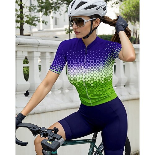Per donna Maglia da Ciclismo Grafico Geometrico Sfumatura Manica Corta Bicicletta Maglia Top con 3 tasche posteriori Protezione solare Resistente ai Raggi UV Asciugatura Rapida Strisce Riflettenti