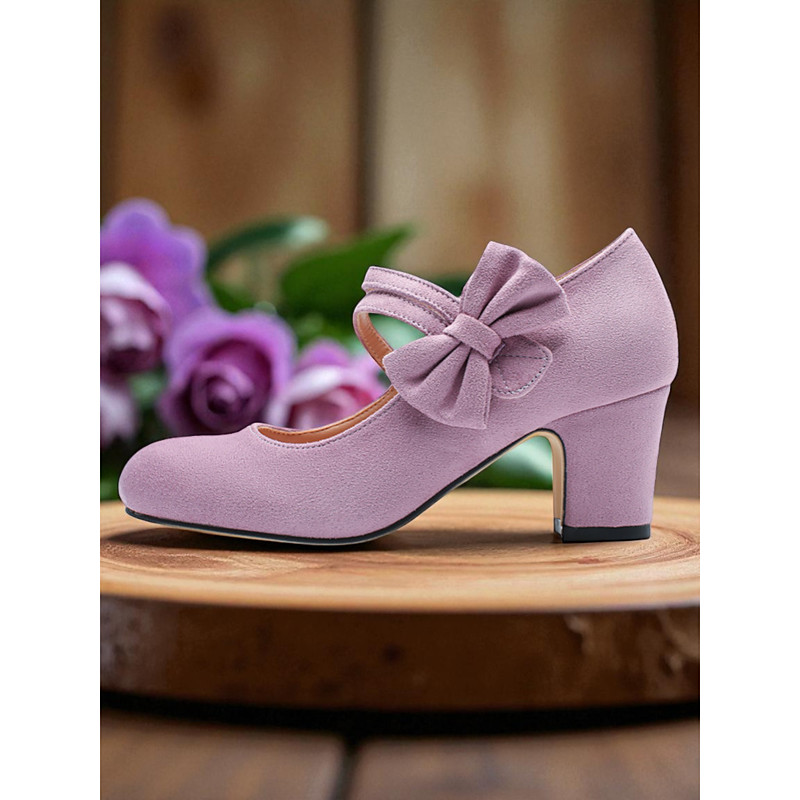 Women's Purple Mary Jane Pumps - Suede Chunky Heel Dress Shoes with Double Bow Straps, 1950s Vintage-Inspired Style for Weddings, Parties and Elegant Everyday Outfits