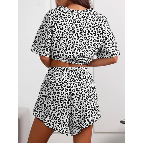 Per donna Set Pigiama Casual Comfort Leopardo Elastico in vita Shorts Quotidiano Casa Manica Corta Girocollo Nero Rosa Marrone Verde Grigio Estate Primavera Vestibilità comoda