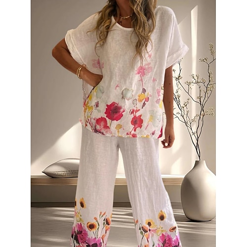 Per donna Set di Pantaloni Bolero Top Manica Corta Girocollo Floreale Grafico Semplice Stampato Vintage Moda Streetwear Quotidiano All'aperto Ferie Blu Bianco Giallo Estate Vestibilità comoda