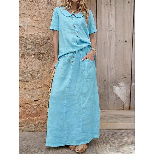 Per donna Abito Lungo Maxi Abito Vestito Casual Moderno Quotidiano Ufficio Vacanza Vestibilità comoda Semplice Manica Corta Scollo a V Blu Cachi Estate Primavera Autunno