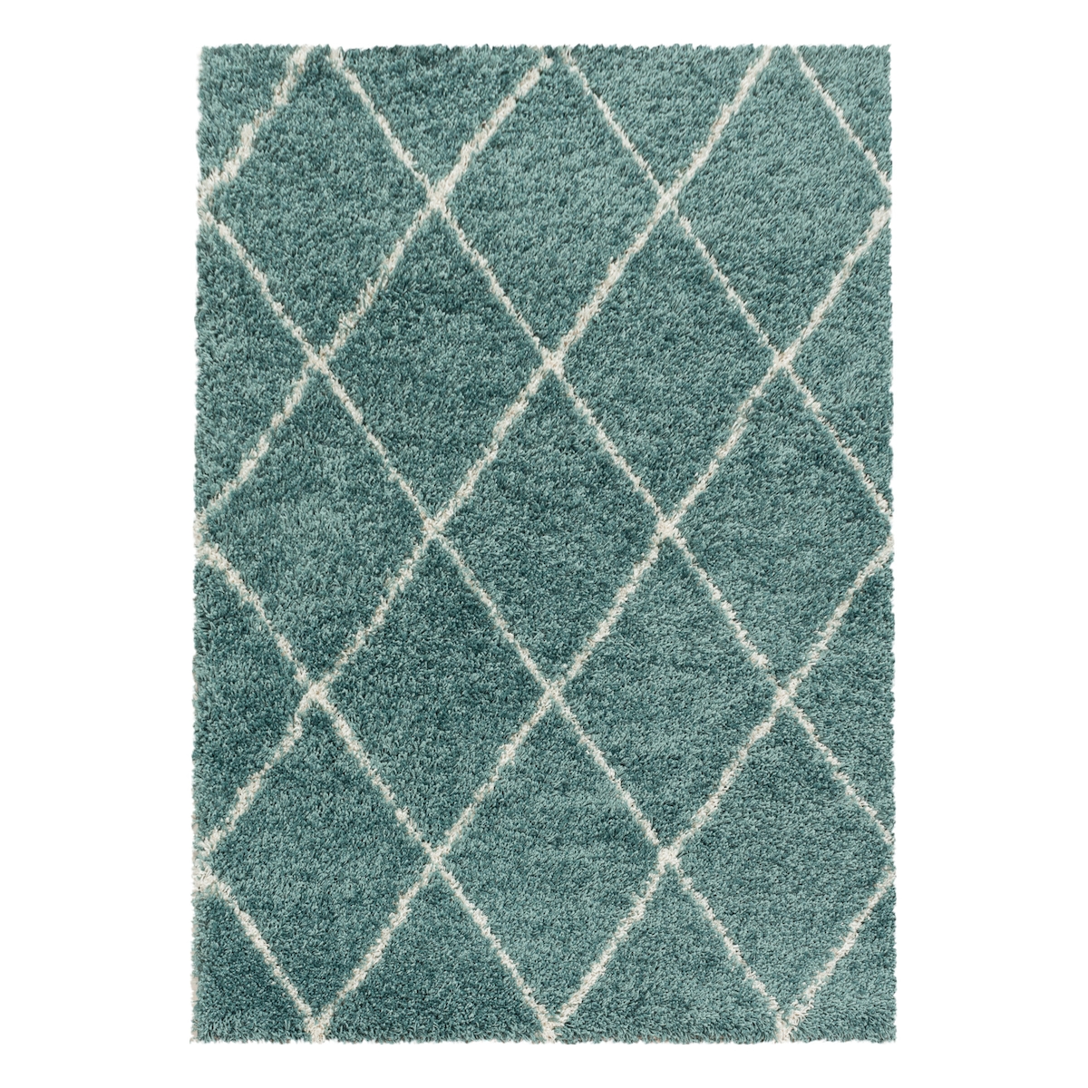 Carpetsale24 Hochflor Teppich Blau 280x370 cm Rauten Design Flauschig- Langflor Wohnzimmerteppich Skandinavischer Stil Shaggy großer Teppich
