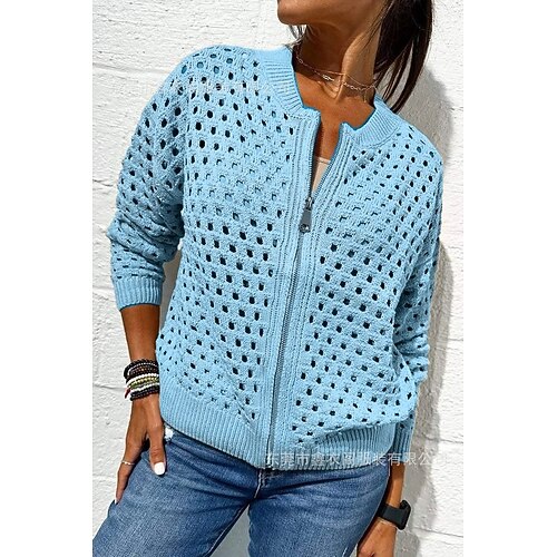 Per donna Felpa Cardigan Elegante Moda Streetwear Tinta unica Girocollo Lavorato a maglia Manica Lunga Top Regolari Maglia All'aperto Quotidiano Ferie Nero Bianco Autunno Inverno
