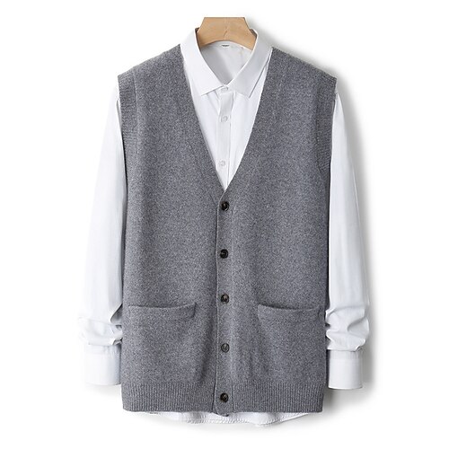 maglione cardigan da uomo in pura lana e cashmere di alta qualità, scollo a V, classico, lavorato a maglia, con tasche e bottoni, tinta unita, morbido, caldo e traspirante.
